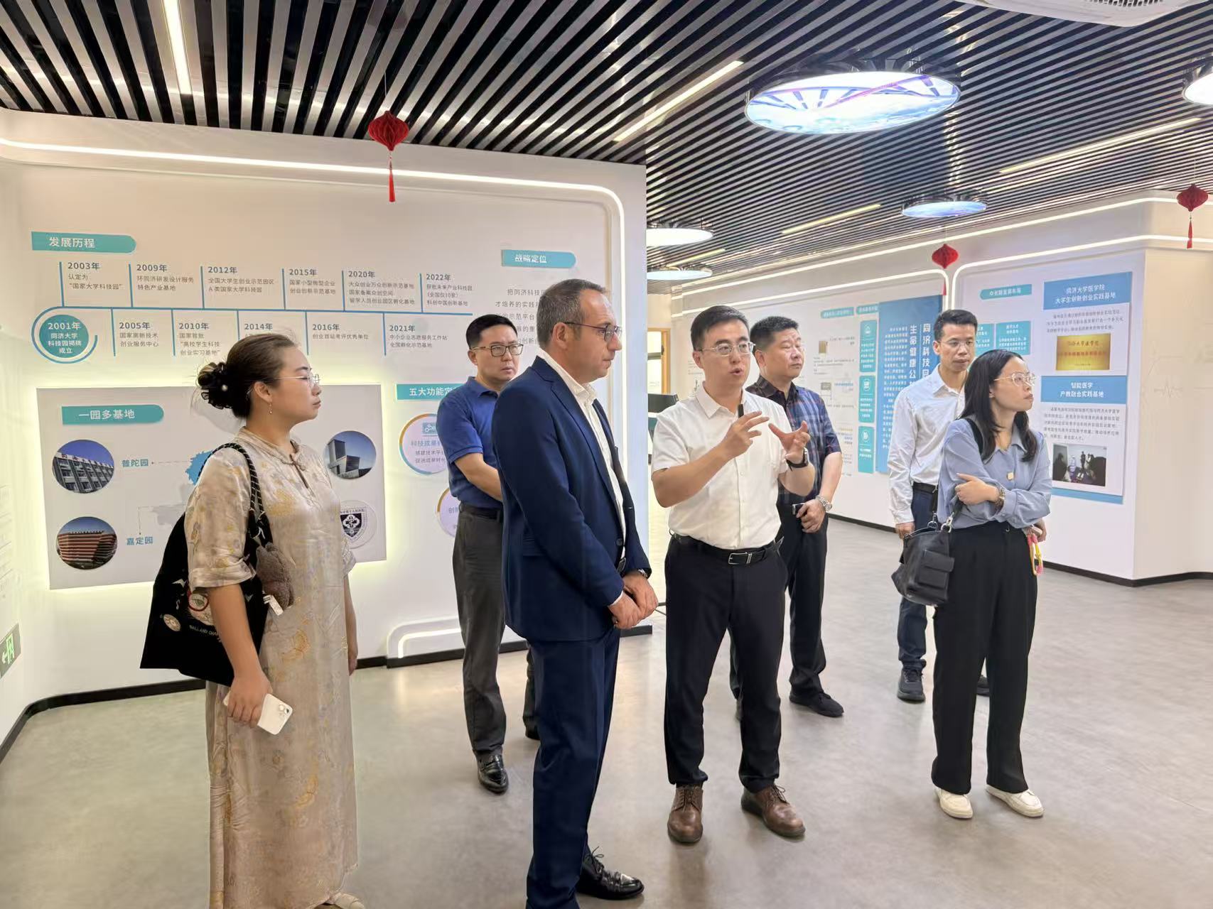 Francesco Di Lieto介绍了科技城在推动科学普及与教育、组织高水平科技展览、促进跨领域科技创新与文化交流等方面的优势,他表示希望未来能在生命健康、数字医疗等多个前沿领域与普陀区及同济体系展开务实合作,共同打造中意科技合作示范项目。